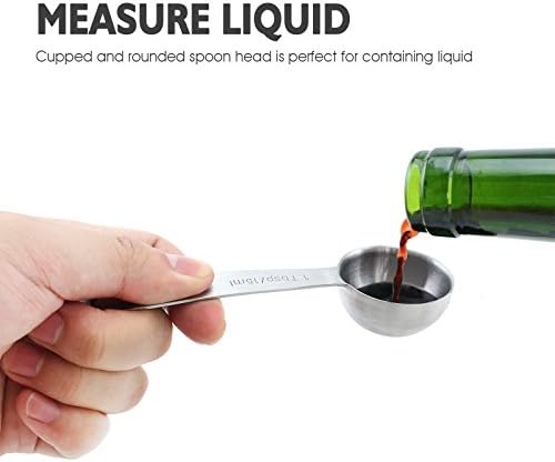 ★ WHY IT IS THE BEST CHOICE FOR YOUR KITCHENS. Refine measurement ensure Perfect food taste every time Accurate balance; Round-shape spoon heads and perfectly weighted handles, high grade satin brushed stainless steel finish for a long life; No to rust! All around measuring tools; Measure dry and liquid ingredients! Engrave US metric Measurement.