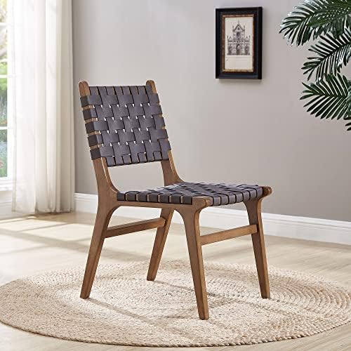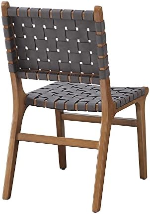Ball & Cast Home Kitchen Faux Leather Woven Dining Chair Set of 2, 18 x 25 x 34.5 inch(W x D x H), Dark Grey