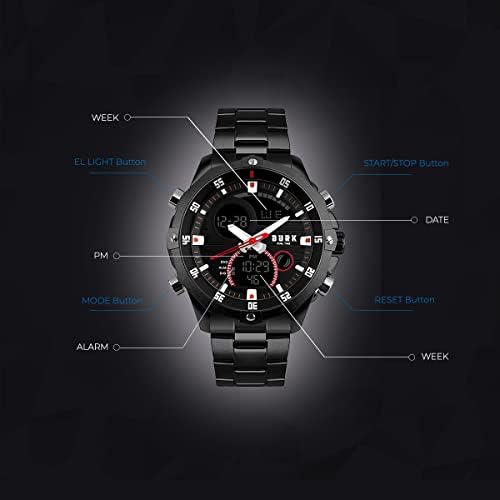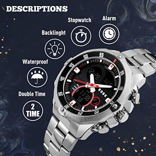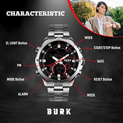 BURK 1146 Men’s Watches Fashion Wrist Watch Analog Digital Stainless Steel Waterproof Men Quartz Sport