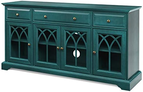 EZ-Style Electric 60” Media Antique Blue Gothic Arch TV Stand Fireplace
