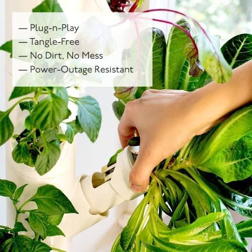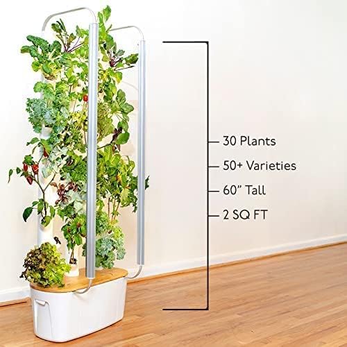 GROW INDOORS: The Gardyn vertical growing tower garden grows 30 plants in only 2 sq ft. The hydroponic tower has an automatic water system with a 6 gallon water tank to support all 30 indoor live plants. No need for additional LED grow lights, grow tent, plant dirt or plant pots.