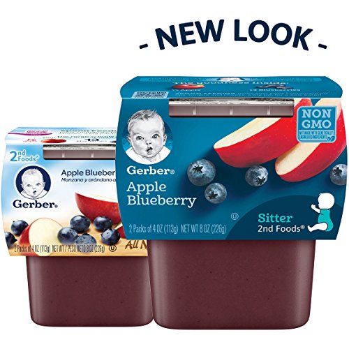 Gerber Baby Food, 2nd Foods Blends, Apple Blueberry Puree, Natural & Non-GMO, 4 Ounce Tubs, 2-Pack
