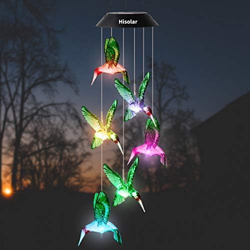 HiSolar Hummingbird Solar Wind Chime Color Changing Solar Mobile Light Waterproof LED Wind Chime Solar Powered Mobile Colorful Light for Home Party Yard Garden Decoration(Green)