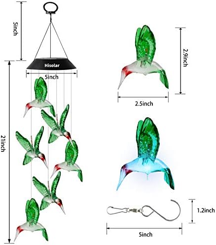 Be the first to review “HiSolar Hummingbird Solar Wind Chime Color Changing Solar Mobile Light Waterproof LED Wind Chime Solar Powered Mobile Colorful Light for Home Party Yard Garden Decoration(Green)”