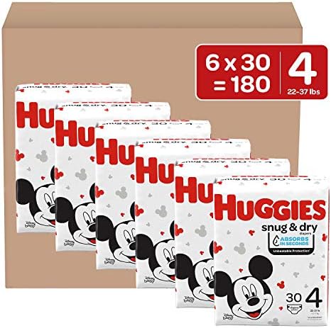 Huggies Snug & Dry Baby Diapers, Size 4, 180 Ct, One Month Supply