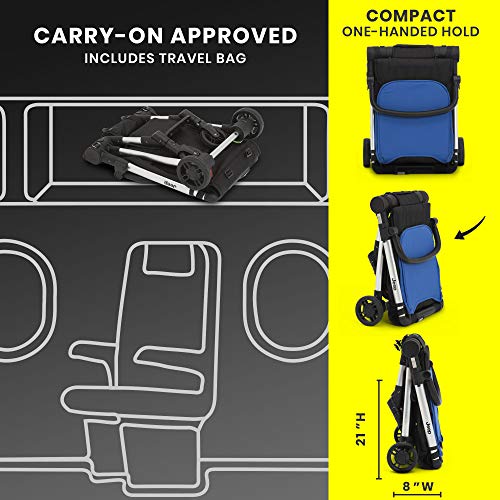 COMPACT, ONE-HANDED FOLD: Folded dimensions: 13”L x 8”W x 21”H | Approved carry-on size easily fits in overhead airplane bins and car trunks | Includes travel bag | Assembled dimensions: 24.4”L x 17.3”W x 37.7”H