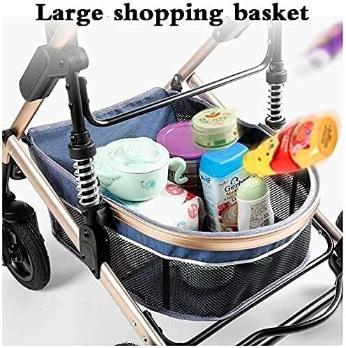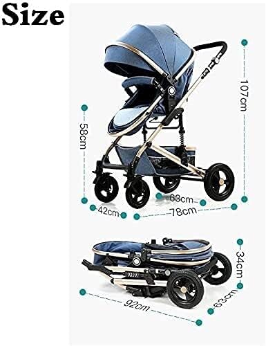 KTOL Pram Travel System 3 in 1,Adjustable High View Pram,Umbrella Stroller Travel System with Baby Basket and Anti-Shock Springs,Infant Carriage Pushchair (Color : Blue)