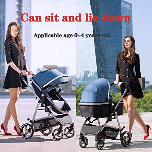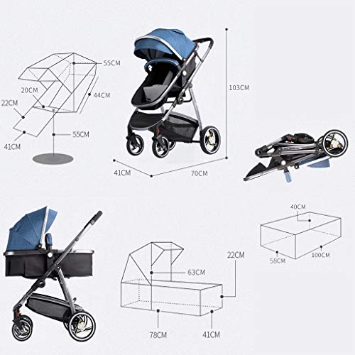 Lightweight Baby Carriage Pushchair Pram High Landscape Travel System Compact Buggy Strollers,2-in-1 Foldable Baby Pushchair for Newborn Baby to Toddler (Color : Blue-1)