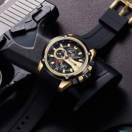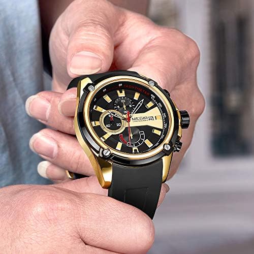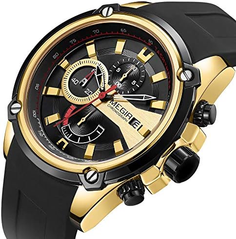 MEGIR Men’s Sports Quartz Watches Silicone Strap Waterproof Chronograph Wristwatch for Man Fashion Black Gold Watch