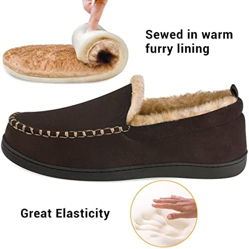 Breathable suede upper with exquisite whipstitch, fully lined with faux fur, these moccasin slippers are in fashion design and keep your feet warm and comfortable in cold autumn and winter.Nonslip versatile hard sole with a high back heel makes you walk steadily outside the house.Our house shoes are all fully machine-washable for quick and convenient clean up as needed.There will be slight floating fur loss, no need to care.
