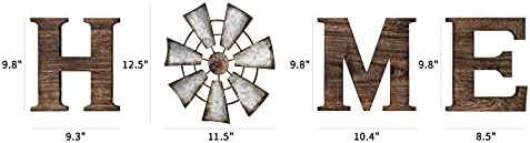 Material: wood, IronColor: BrownSize: Letter “H”: 9.8”H x 9.3”W Windmill “O”: 11.5” Diameter Letter “M”: 9.8”H x 10.4”W Letter”E”: 9.8”H x 8.5”WPackage included: 1x HOME sign