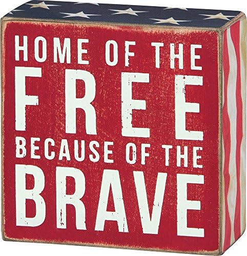 Primitives by Kathy 23148 Patriotic Box Sign, 4 x 4, Home Of The Free