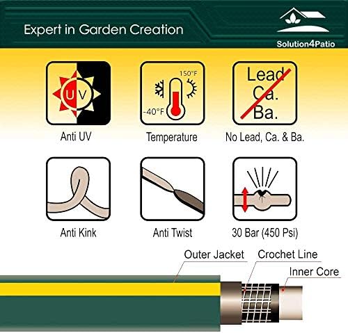 Solution4Patio Homes Garden 3/4 in. x 100 ft. Garden Hose, Brass Fittings, No Kink, No Leaking, Heavy Duty, High Water Pressure, for Extremely Weather 12 Year Warranty, No DOP, Environmental-Friendly