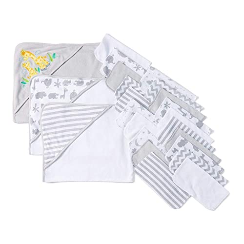 Spasilk Bath Hooded Towels & Washcloths Set for Babies, 23-Piece Gift Set, Grey, (Gift GBA23 0501)