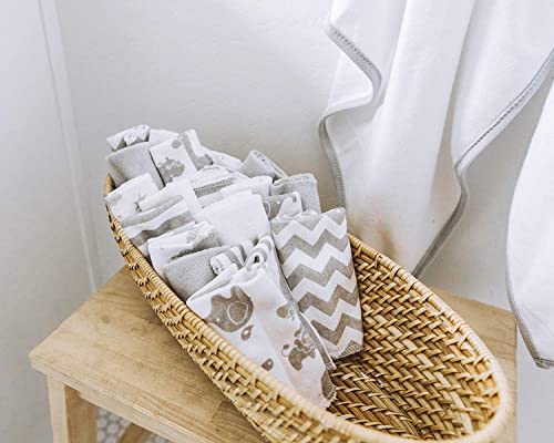 A clean baby is a happy baby. Make bath time a breeze with these baby towels that come with adorable hoods to dry your little one quickly while wrapping them in comfort. The baby washcloths are lightly textured to get your baby clean, while the adorable hooded towels ensure that they are extremely gentle against your baby’s skin. This grey towels and washcloths set comes with beautiful designs- embroidered or printed- that your baby will definitely love. If you have a baby shower to attend, don’t fret about the gift! This hooded baby shower gift set is a perfect and practical baby gift for newborn boys and girls alike. The 23-piece baby towel & washcloth set includes baby bath essentials: 20 washcloths (9″ X 9″) and 3 hooded baby towels (30″ X 26″). They are made of 80% cotton and 20% polyester and are machine-washable and light enough to dry quickly. These hooded towels and washcloths are designed to withstand regular use.