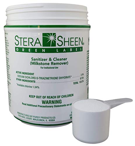 Your order will contain selected pack quantity of 4 lb jars. Easy to follow instructions are provided on the packaging. Stera Sheen Green Label Sanitizer and Cleaner is an NSF listed and approved sanitizer Key Product Features