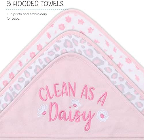 CUTE FLORAL & ANIMAL PRINTS: Bath time with your little one will be sudsy fun with this Pink Floral & Cheetah Print 23 Piece Baby Bath Gift Set. Three large hooded towels (30×26) and 20 washcloths (9×9) make this the most complete bundle of baby bath accessories for your newborn or toddler.