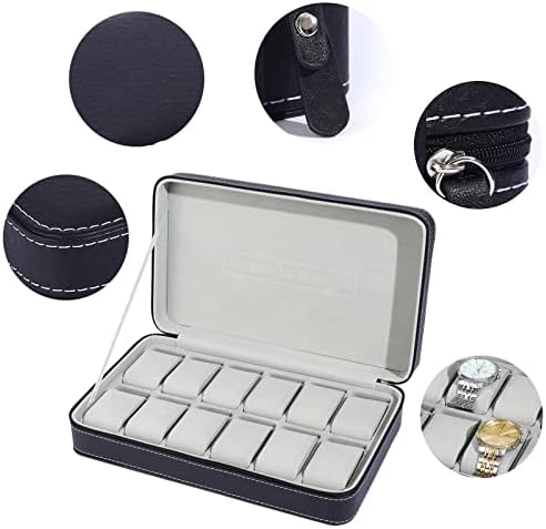 This is a 12-slot ostrich pattern PU leather zipper watch storage box, lightweight, portable and durable. The wiring process and quality are simple, and no high-end embellishments are required,It has its own noble, exquisite interior design, reasonable storage to display your watch.